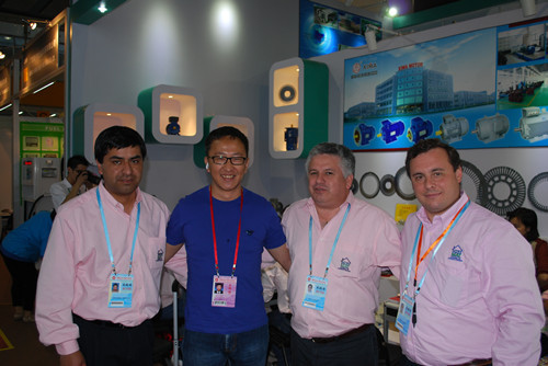 第110届广交会上凯时AG集团大连进出口分公司代表与客户合影