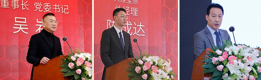 来自金普新区、大连自贸片区、韩国领事馆、大连韩国贸易馆馆长、中国大连韩国人(商)会的相关领导出席集会,并配合按下项目启动按键。